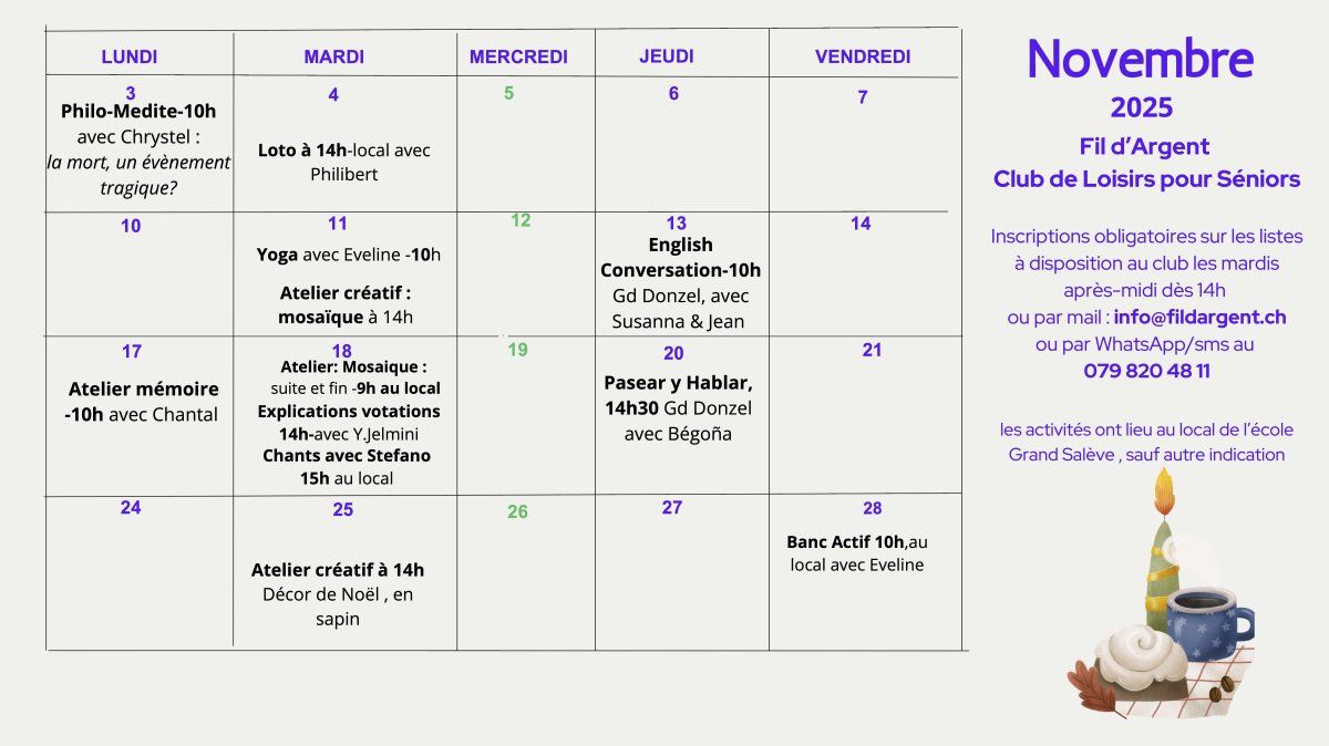 - un programme mensuel attractif avec des activités s'adressent aux besoins diversifiés des membres