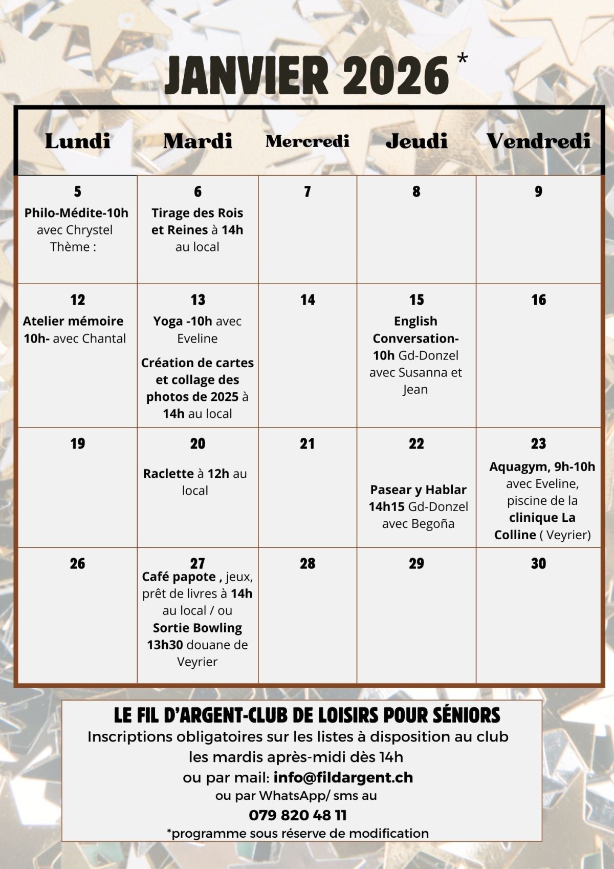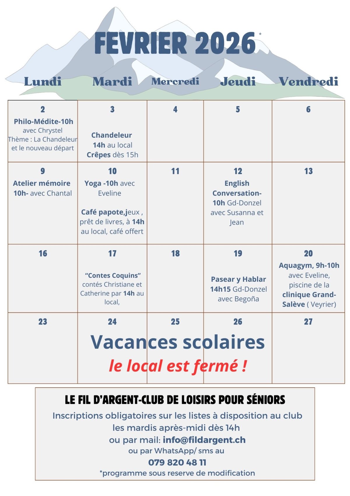 - un programme mensuel attractif avec des activités s'adressent aux besoins diversifiés des membres